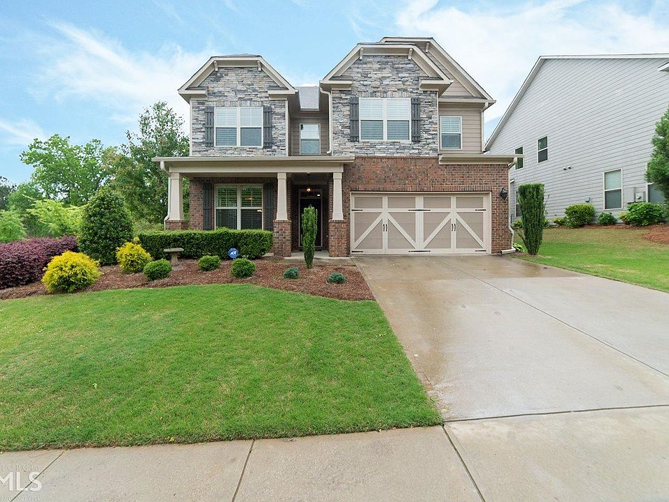Built in 2013, this Buford two-story corner lot home offers a gas fireplace, stainless steel appliances, granite kitchen countertops, and a two-car garage. Home comes with a 30-day buyback guarantee. Terms and conditions apply.