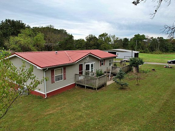 This charming 3 bed, 2 bath manufactured home on approximately +/- 9.67 acres provides a wonderful blend of comfort and country living. Nestled in a private setting with a creek, this property offers both serenity and space. The home features a cozy breakfast area and a separate dining room, perfect for family gatherings, and the kitchen includes a convenient island. Step outside to a spacious porch with a ramp, ideal for enjoying the peaceful surroundings. A barn on the property, previously used for stalls, offers additional space that has been utilized in the past, along with an area that once served as an outdoor arena. Whether you're seeking a quiet rural retreat or looking for room to expand, this property has incredible potential. Seller is offering the property "AS IS.