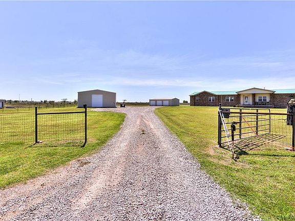 Plenty of open space on this fully fenced 20 acres of open pasture land with a pond. Enjoy your morning coffee on a large covered front porch. Tons of natural light and very large rooms in this 2,656 square foot home. Large living room with a wood burning fireplace. Open kitchen with an abundance of cabnetry and a breakfast bar. Large master bedroom boasts a closet bigger than most 2nd bedrooms!! Master bath has dual vanities, stand up shower, and jetted spa. Desk space along the hallway leading to the 3rd and 4th bedroom. Reverse osmosis water softening system. 2 Hvac units to keep this house warm or cool. Large in-ground storm shelter right off of the back porch. 3 large shops 30X40, 30X40,and 60X40. One shop is used as a 3 car gragage with plenty of extra storage space. Large shop has 14 ft doors.