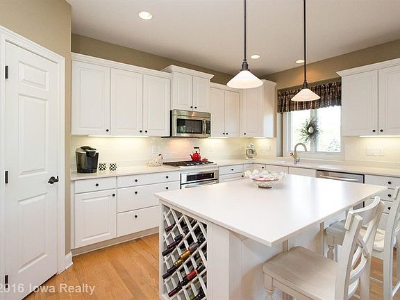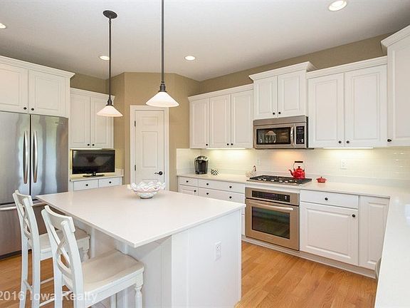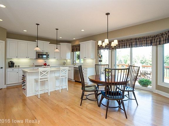 You won't find one nicer! This one owner home built by Breckenridge is spotless. Many updates like roof, siding, garage doors. deck, carpet, appliances & more! Two sided fireplace open to hearth room off kitchen and great room. The white kitchen has Corian counters, pantry, hardwood floors, & stainless steel appliances. Formal dining with crown molding, chair rail & hardwood floors. First floor owner's suite has many details, walk in tile shower, whirlpool tub & a super closet. Walk out lower level has second family room with surround sound, two bedrooms with shared bath plus a powder room. Mature trees & beautiful landscaping in the irrigated yard. Did I mention this home is spotless? Nothing needs done, except enjoying it while relaxing on a covered front porch, back yard deck or your stamped patio. Three car garage with lots of cabinets & Epoxy floor.