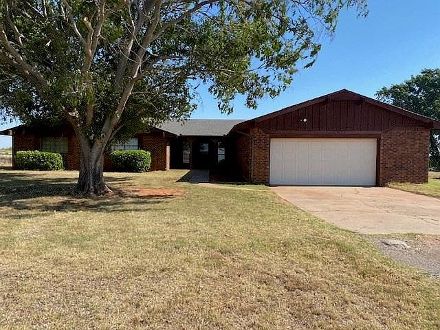 Hard to find 3 bedroom 3 bath brick home on 2 acres. This beautiful home has unique storage room, large open kitchen and dining room, new stove, lots of storage and cabinets with pull outs, breakfast bar, large entry, Huge living room with wood fireplace, wood laminate floors, added on sun room right off of the living room, new Central H/A. Outside are 2 acres and a 30X40 Barn. Also located close to Western OK Christian School.