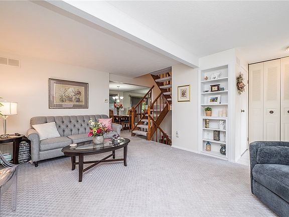 This well maintained 3-bed, 1-full + 2-half bath TH in the Hunting Ridge community of S Fayette offers an upgraded lifestyle w/the community pool, sports courts, meeting house, and walking trails all maintained by the HOA along w/removal of snow from private streets & trash collection. The lvl entry steps into a tiled foyer w/coat closet & pwdr rm. Enjoy fresh paint & carpet in the liv & din rms. The livrm offers natural light, built-ins, and a FP that creates a cozy atmosphere. The dinrm is dinner party ready & provides access to a deck. Step from the dinrm into the equipped KIT w/ample storage, granite surfaces, pantry, & counter seating area that can also provide extra buffet space when needed. 3 bedrms & full bath on the upper lvl include the master w/dressing rm & walk-in closet that if reconfigured could create a 2nd full bath w/smaller closet- ensuite bath anyone? LL game rm w/access to rear lawn, laundry, ½ bath. 2 assigned parking spaces in front. Convenient to Rt. 19 & I-79.