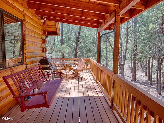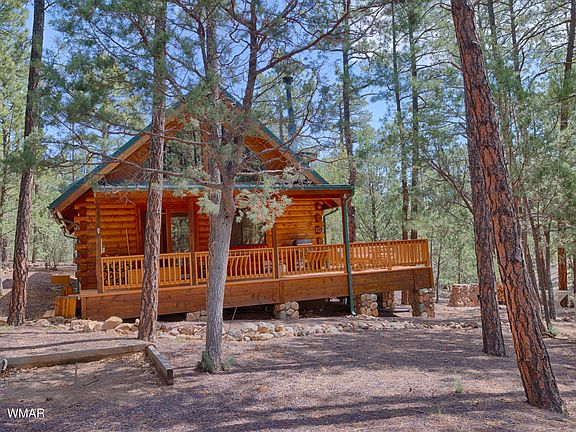 ''The Quintessential Log Cabin'' nestled in the tall pines. Conveying furnished! You will love the peace &tranquility you will experience upon your arrival. Exterior offers wrap around deck, full log home & metalroof. Interior boasts tongue & grove, wood stove w/stone work, vaulted ceilings, Arizona Rm built off master suite & separate tub & shower in master bath. Better hurry!