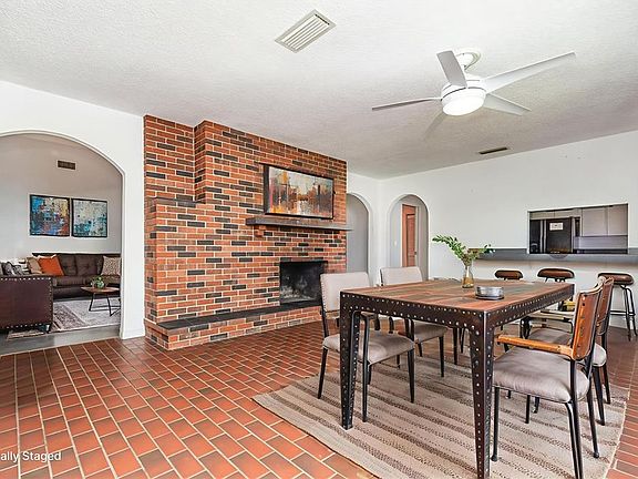 Metal storage garageMovable center islandLarge sunroomStorage shedsOversized garageCozy wood-burning fireplaceSpanish-style architecture