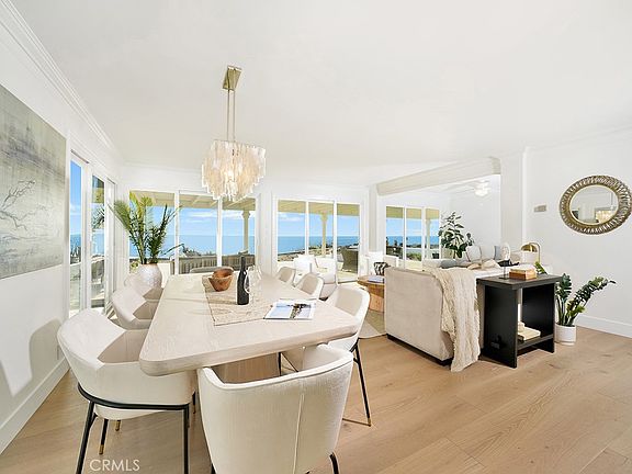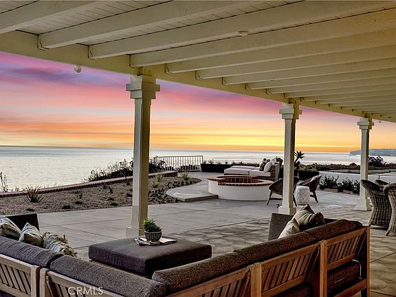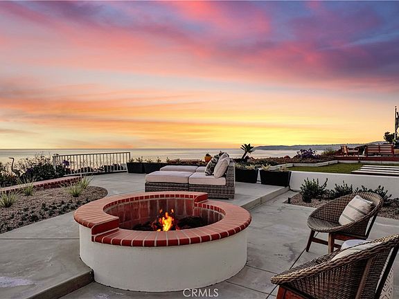 Welcome to the perfect get-away-from-it-all, single-level beach house with superlative coastline views that stretch from Cotton's Point to the Dana Point Headlands. Interspersed between those two iconic landmarks are scenes of sandy golden beaches, tide pools, white water, the San Clemente pier, Seal Rock, Dana Point Harbor with San Clemente and Catalina islands off in the distance. After sunset, this rare vista will continue to captivate imaginations. Whether reclining beneath the covered patio or staying warm around the outdoor fire pit, the outline of the coastline is illuminated by the downtowns of San Clemente, Dana Point and the Harbor late into the evening. These sit-down, blue horizon views may be enjoyed from the kitchen, great room, living room, primary bedroom and expansive backyard. This mid-century home features three bedrooms (one is currently used as a study), three bathrooms, an open floor plan, 1,988 square feet of living space, an attached two car garage, an oversized driveway and an automated gate in the front yard. A wall of sliding glass doors facing the ocean connects the main living area to the backyard's spacious covered patio and provides an easy transition between indoor and outdoor living. Recent improvements include designer interior paint, imported European oak floors, upgraded light fixtures and a low maintenance landscape design. Additional features include the primary bedroom's ensuite bath with dual vanity and step in shower, central AC, upgraded dual paned windows, sliding glass doors, interior laundry area, an alarm and a remote video surveillance system for additional peace of mind. La Ventana is an extremely private street with a cul-de-sac at each end and no public park or lookout to attract additional traffic. Yet, the home is less than 8 miles from an array of shopping destinations (boutique shops to outlets), world famous surf, a network of coastal trails spanning miles, trendy dining and the vibrant downtowns of San Clemente, Dana Point and San Juan Capistrano to explore.