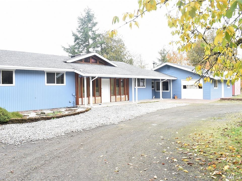Renovated mid century modern rambler on flat 4.9+ acres, split 3 bedrooms floor plan, separate living areas w/ 2nd kitchen, potential rental/mother-in-law, new floor in most areas, new windows, new slab granite, new kitchen, new appliances, new bathrooms, cozy sunken living room with fireplace, vaulted ceiling. Minutes to hospital, amenities and shopping centers, quick access to freeway. Circular driveway, RV parking, newer septic system, newer heat pump. Huge trex deck, several outbuildings.