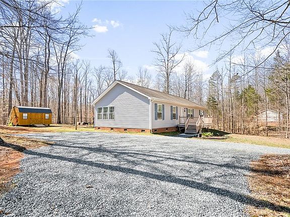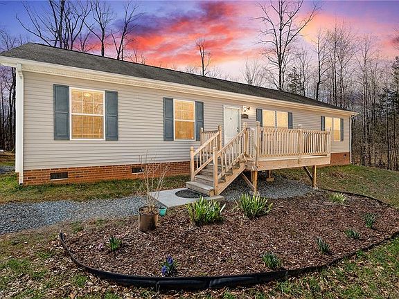 Well maintained 1600 + sq ft modular on almost FIVE acres with creek on backside of property! Brand New carpet in all bedrooms & new vinyl plank in living, hall & den/flex room. Lots of natural light! Kitchen nice in size w/ plenty of cabinet storage & pantry. Primary bedroom generously sized, bath has dual vanity, soaking tub, separate shower & makeup area! Other bedrooms decent in size. LOVE the flex area, was used as a den/lounge area! Perfect for a playroom, office or whatever your desire. Backyard has 6ft fence for animals that will convey. Buildings will also convey. Lots of area to roam, and yes, wildlife like to roam too! Home has full home water filtration system too! 15 tons of gravel just brought in! Come check it out! Property line backs up to Little Uwharrie River.