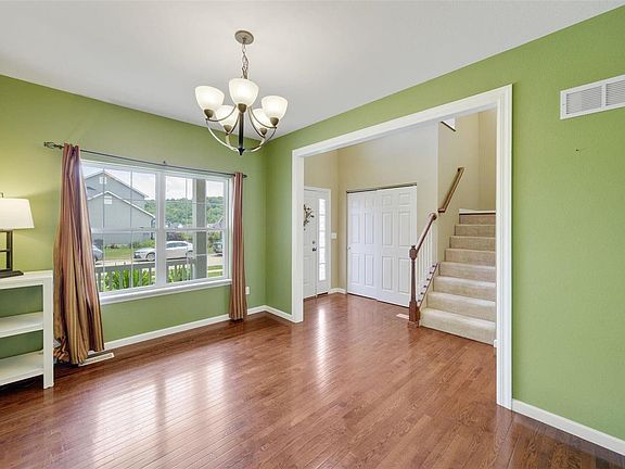 Check out this lovely 2-story, 4-bedroom home that offers room to grow. The 2-story entryway sets the tone of this beautiful home with cherry hardwood floors throughout the main level, an open floor plan, 9' ceilings, main-level laundry, and pantry. The kitchen boasts upgraded 42' maple cabinets with crown molding, stainless steel appliances, center island, and breakfast room with a separate dining room. The great room features custom built-in bookshelves surrounding the gas fireplace. Upstairs you will find the large master bedroom complete with his/her walk-in closets, and a master bath suite with a separate tub and shower along with the other 3 bedrooms and a full updated bath. The finished lower level offers additional living space with a large family room, a half bath, space for storage, and an egress window. The private fenced backyard with patio backs to common ground, making it perfect for entertaining or just relaxing outdoors. This won't last long. Set your appointment today.