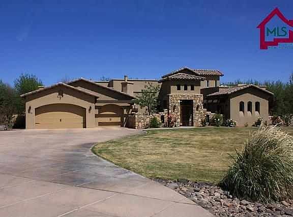 Exquisite Tuscan Style custom home. This unique property is situated on a private one acre lot in the new Mesilla Acres Gated Subdivision. Features include; four bedrooms plus a media room, extensive use of beams, natural stone, wrought iron accents, Old World doors, granite and plantation shutters throughout. Hand troweled walls with faux finishes add great depth and character to this extraordinary architectural wonder. The entire one acre has been professionally landscaped with grass, trees, shrubs, and multiple rose bushes planted around a beautiful in-ground pool and hot-tub. The gated courtyard includes an entry tower with tongue-in groove ceiling, fireplace, additional wrought iron accents and a lovely three-tiered fountain. The back patio area has a built-in grill, refrigerator and fireplace with views of the Organ Mountains. For the discerning buyer, this beautiful home is ready to move into! 24 hour notice.