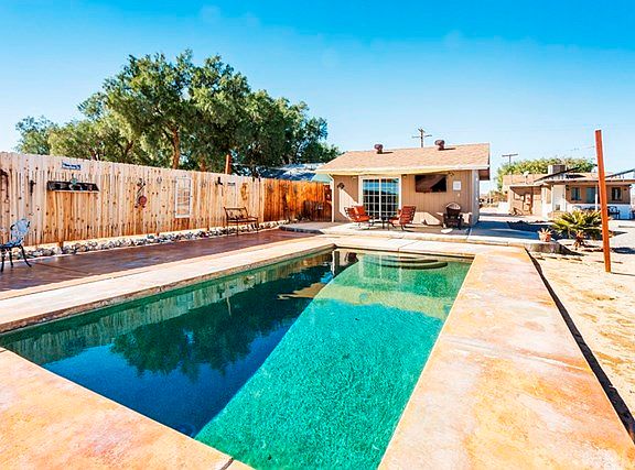 Here is that jewel in the desert you were looking for. This 2 bed and 1 bath home has been well maintained and has had some nice upgrades. This home would make the perfect Vacation rental. The home is powered with solar. There is a newer Central air system and the roof is pretty new too. Garage has been transformed into a studio/man cave. And your just gonna love the built in Salt water Pool. And Property has a good working Well. This property isn't going to last, its a must see....