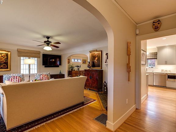 Dolph Park English Tudor. Recently remodeled and very well maintained. Newer Neil Kelly kitchen, master suite w/private bath and walk-in closet. Formal entry, open staircase, hardwood floors, leaded glass windows. Some newer windows, roof and exterior paint. Large family room in the basement with an office/wine cellar/guest quarters. Two laundry hook-ups, one on the 2nd floor and one in the basement. Sunroom/office on the main floor.