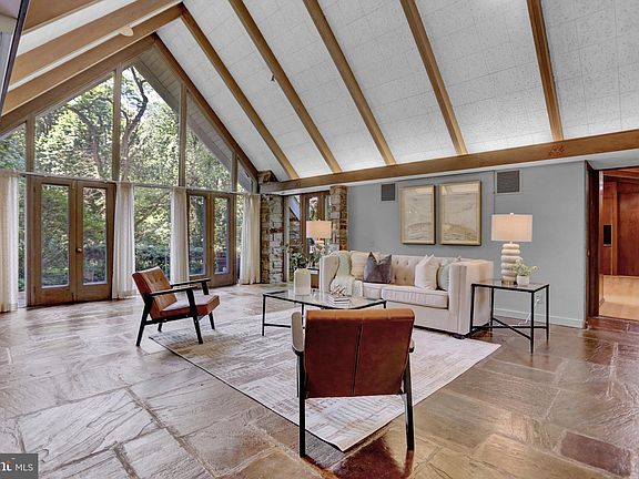 This custom Mid-Century modern marvel seamlessly blends mid-century design and luxury with functionality, offering an ideal living space for those who appreciate style and comfort. An exquisite stained glass designed by an artist from the Adirondacks, sets the stage as you walk -in for this custom home and all of its wonder. Designed by architects from Smith and Vale in the style of Frank Lloyd Wright, the living room is lined with sweeping windows, doors, vaulted and red wood beamed ceilings, with plenty of space for relaxation and entertaining, with custom built-in shelving and double-sided fireplace and a powder room. The open concept living and dining area is both spacious and warm and connects seamlessly into the kitchen. A chef’s dream, the custom kitchen is equipped with all of the “bells and whistles” including top-of-the-line Kenmore Pro and Kitchen Aid stainless steel appliances, large island with cooktop, double wall ovens, a bread warmer, detachable table, wet bar, coffee bar, and smartly design storage perfect for culinary enthusiasts. Built-in cabinets display your favorite treasures and keepsakes lining the kitchen and dining area. The all-season sunroom off of the kitchen bathes the space with warmth and light and is complete with built-in cabinetry. The primary suite is outfitted with custom closets with private access to the courtyard with bucolic views. The primary suite is complete with a luxurious ensuite bathroom with soaking tub, separate shower, and numerous elegant touches. Enjoy custom stained glass window and door features, slate stone work, heated floors, and millwork throughout the home. On the other wing of the home, three additional spacious bedrooms with large closets and pocket doors provide comfort and efficiency through smart design, as well as two full bathrooms and an office nook with a stunning mahogany mantel. The main floor laundry has plenty of additional storage and convenience to the living area. The attached three car garage with EV 220 charger and circular driveway provides plenty of parking for multiple vehicles and additional storage. The finished basement, perfect as an additional office or recreation space, has its own bathroom with large stall shower, a large cedar closet, and a storage room. The 1.43 acre grounds includes a large gazebo, cozy flagstone courtyard spaces, sculpture, and an out building/storage shed. Over $150,000+ of investments in the home are passed on to the new owner of this gem, with a new roof in 2024 (not A-frame), new furnace and HVAC system in 2023. Don't miss the opportunity to own this exquisite home. Located in the desirable area of Pikesville, MD, this home is close to top-rated schools (The Park School and Gilman schools right nearby) country clubs (Suburban Club and The Woodholme), shopping and dining destinations at Quarry Lake, commuter routes and recreational facilities. Near the Cylburn Arboretum and numerous parks. Property is sold with an additional, buildable 1.25 acre adjacent lot (2903 Old Court Rd).