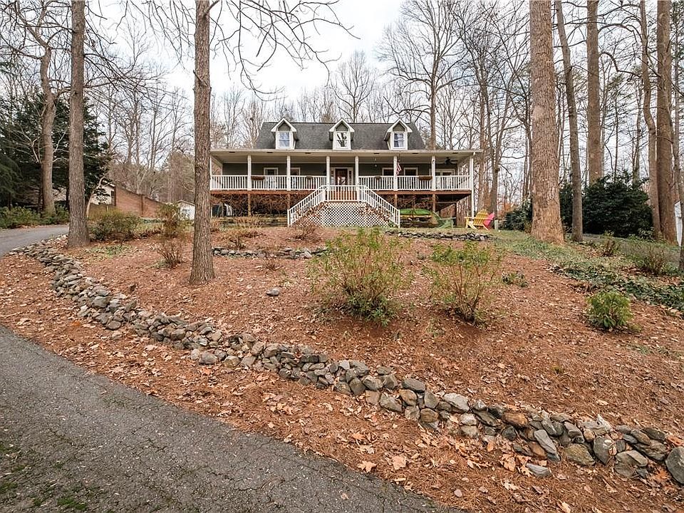 Back on market at no fault to the sellers. Beautifully situated on a spacious lot, this charming furnished home features breathtaking views in Crowders Mountain's backyard! This nature lover's dream home has water frontage, a back deck for entertaining guests, and a large covered front porch to enjoy the sunset every night. Step inside to a bright and open living space with plenty of natural light and a warm, inviting atmosphere that is perfect for entertaining guests or relaxing with family around the cozy fireplace. The exterior is surrounded by gorgeous trees and a wraparound driveway, which gives a home away from home mountains feeling. You'll definitely want to see one of the most unique homes in Gaston County located minutes from Crowders Mountain Golf Club!