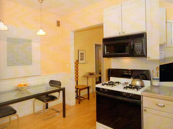 This one and a half-story Victorian bungalow features a spacious and open living room and dining room, with a great south-facing bay window. The large, sunny kitchen includes an impressive pantry, two bedrooms with good-sized closets, plus an additional office space overlooking the courtyard, ideal for working from home. The bathroom has an original clawfoot tub, and upstairs there are two large, open rooms, just right for watching your favorite movie, making art, or exercising.