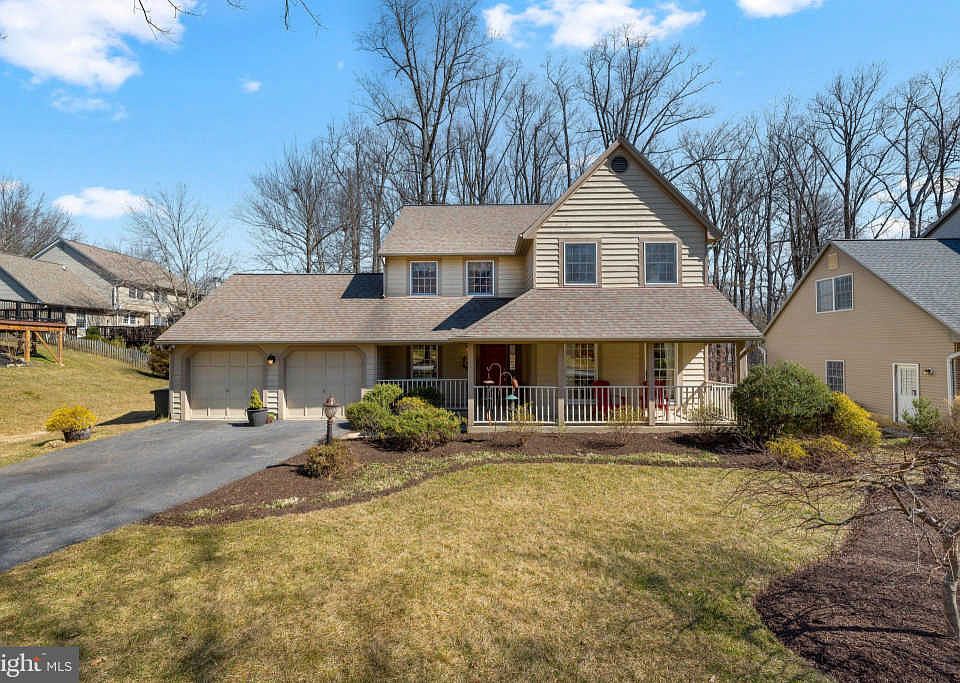 Totally upgraded colonial home in Turf Valley Overlook is perfectly set on a gorgeous lot backing to trees! A charming front porch and foyer entry welcomes you inside to find a living room, dining room with bright bay window, and French doors opening to the study, perfect for working from home! Relax in the sun-filled family room with cathedral ceiling, skylights, and floor to ceiling brick fireplace flanked by elongated windows. Remodeled chef's kitchen boasts multiple skylights, custom cabinetry, sleek granite counters, center island, and breakfast room. Walk out to the deck with steps leading to the lower deck and tree-lined backyard. Upper level hosts 4 bedrooms including the owner's suite with huge walk-in closet, attached remodeled bath with imported Duravit soaking tub, walk-in shower with granite ledge, and granite topped vanities. Remodeled basement with fresh paint and new ceramic plank flooring features a rec room, games room, wet bar, 5th bedroom, full bath, and walkout access to the lower deck! Endless updates include new refrigerator and dishwasher (2021), new gas stove (2020), refinished main level hardwood floors (2020), upper and lower decks (2015), gas furnace, high efficiency AC, gas hot water heater (2010) HVAC system with Trane heat pump for the upper level, the main and lower levels are 1 zone, they have gas heat, custom blinds ( 2010), and new roof (2009). There is a gas line that runs to the basement, a gas fireplace could easily be installed. Welcome home!