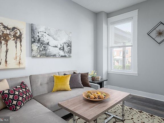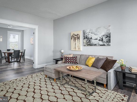 Nicely renovated porch-front home, ready for its new owner. The main level features open and inviting floor plan with a spacious living room, newly installed floors, original french doors and trim, formal dining room, and a newly updated kitchen with white shaker cabinets, stone countertops and stainless steel appliances, as well as a conveniently located powder room and a mudroom. Second floor offers 4 large bedrooms with brand new carpeting and a newly renovated bathroom. Basement is perfect for storage. Front and backyard were newly sodded. Ground rent to be verified by the buyer.