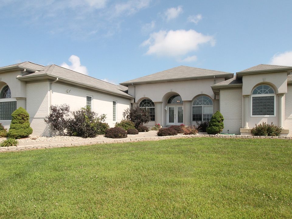 Are you searching for an architectural style with a little more personality? This high quality, custom built home offers charm that stands apart from the ordinary. A Mediterranean inspired stucco and limestone brick exterior with arched windows situated on 3 acres with a pond. The stunning entryway leads to a bright and open living area with soaring ceilings, columns, and custom built-ins. A beautiful kitchen complete with sleek stainless steel appliances, a breakfast bar and a breakfast nook to enjoy your morning brew. Formal dining area for large dinners, and a cozy family room with additional built-ins and a fireplace. Enjoy your own personal retreat in the master suite with patio access and an additional fireplace. Unwind in the master bath Jacuzzi tub, or the tiled walk in shower. Wind down after a long day while relaxing on the spacious covered patio overlooking a stocked pond. Additional features include security system, central vac system, reverse osmosis water system, air quality filtration system, and geothermal heat. Just over 3,000 square feet of heaven!!