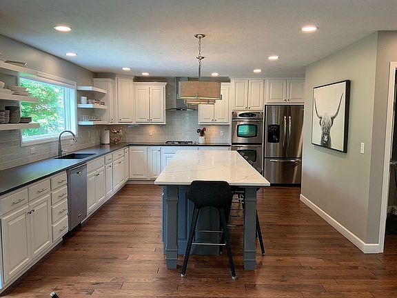 **Not paying realtor fees at this time** Beautifully updated 2-story home with open floor plan and walk-out basement on quiet dul-de-sac. Large, gourmet kitchen with 6ft picture window and open shelving welcomes you to the expansive, quartz island. In the adjacent living area, you’ll find a gorgeous stone wall behind a modern fireplace. The large, first floor office is perfect for remote work or is easily transformed into a formal area or kids playroom. Upstairs you’ll find 4 bedrooms, including the 12.5x17ft master suite with his&hers closets, walk in shower and jetted tub. In the walk-out basement, you’ll find 2 conforming bedrooms, a full bath and gas fireplace. This well-planned house is chalk full of storage and the 3-stall, tandem, heated garage is no exception. With room for 5 cars, you’ll have plenty of room to grow!