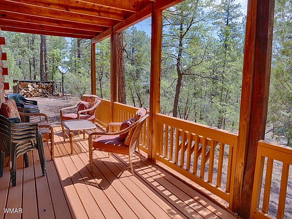 ''The Quintessential Log Cabin'' nestled in the tall pines. Conveying furnished! You will love the peace & tranquility you will experience upon your arrival. Exterior offers wrap around deck, full log home & metal roof. Interior boasts tongue & grove, wood stove w/stone work, vaulted ceilings, Arizona Rm built off master suite & separate tub & shower in master bath. Better hurry!