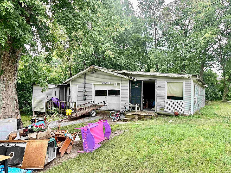 Property being sold "AS IS". Updates: Gas Water Heater, (2022), Gas Forced Air Furnace (2020), 200 AMP wiring, Plumbing (2020) and breaker box. Formerly a duplex, now opened up & mostly unfinished. Kitchen/living room combined. 2 bedrooms and 1 full bath. Washer/dryer hookup in bedroom closet. 2nd bath has a working stool & hook up for additional water. One shed is open (no doors). Kitchen/living room are one area and has a gas stove hook up - no appliances remain.