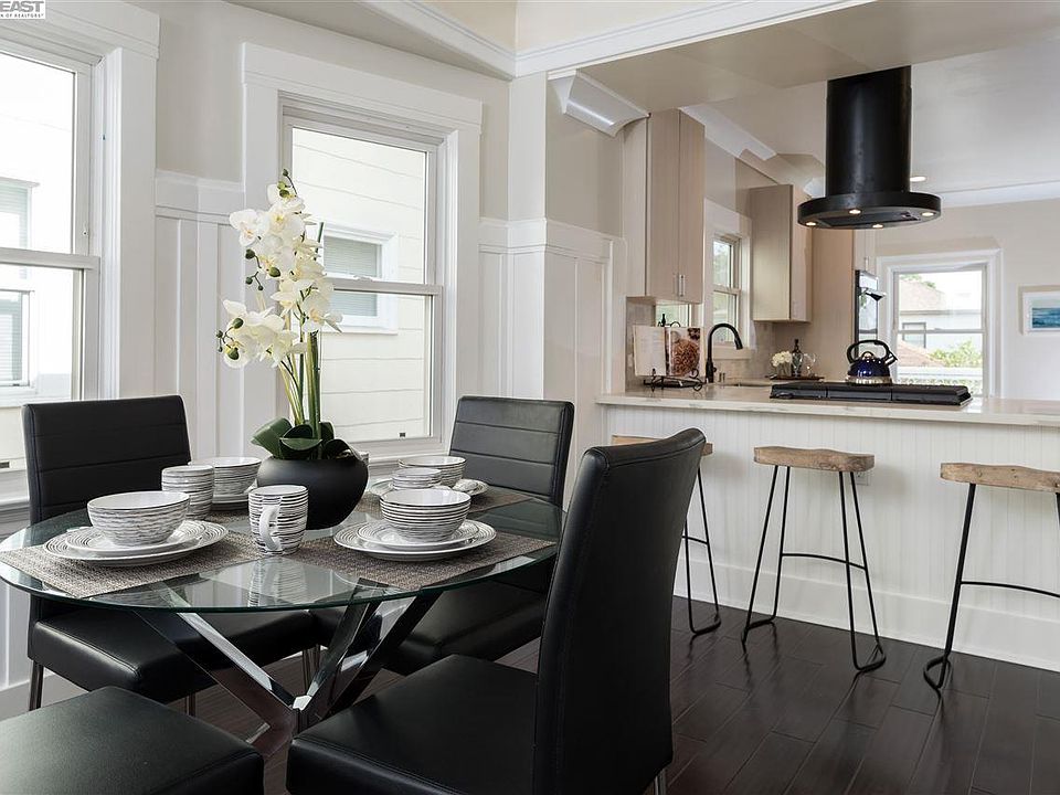 Completely revolutionized 4 bedroom, 3 bathroom Alameda property in a GREAT location in a quiet and serene neighborhood! Remodeled WITH permits. Two story with private detached garage! 1868 sqft with a HUGE sized lot, low maintenance yard, patio entry! New engineered HARDWOOD floors, new kitchen with high end cabinets, premium Samsung Black Stainless Steel appliances, new bathrooms, premium Quartz countertops and new lighting! NEW electrical and NEW plumbing! Will NOT last long. Dual pane windows throughout! New tiles, fresh paint inside and out! BRAND NEW central heating with NEST smart thermostat!