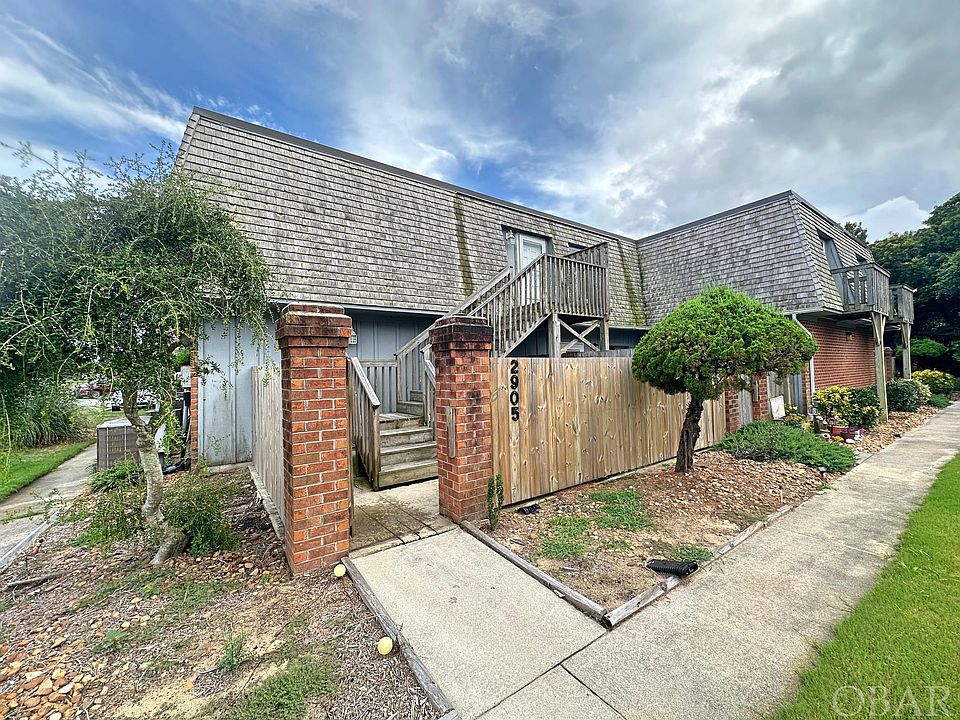 CHARMING TOP FLOOR END UNIT!   Updated, classic, simple, you'll love it!  Two large, primary bedrooms, one with a deck overlooking the lawn, open great room and fenced in patio.  The location is awesome - just steps to the community pool, clubhouse and tennis courts, walk to dinner at local fav Bad Bean and centrally located in Kitty Hawk with just a very short drive to the beach, shopping and so many other restaurants!