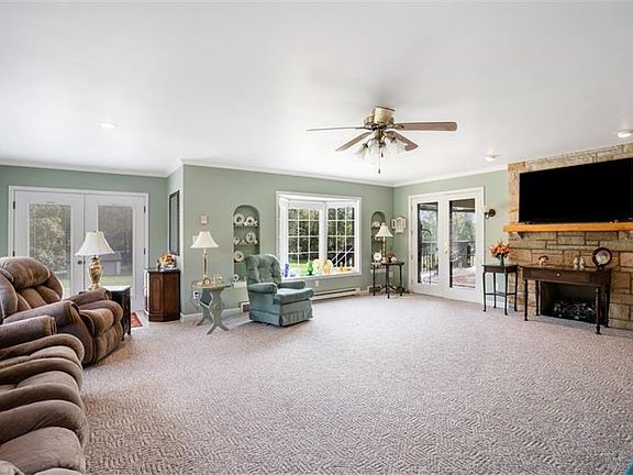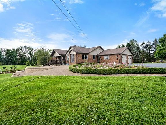 Skirted by a stream on 1.65 acres of tranquility, this substantial, full brick Neshannock home's setting is proof that park-like privacy doesn't have to be far removed. Designed with light, space, and functionality in mind, this lovingly maintained ranch speaks "welcome" and uplifts your mood the moment you enter. Centered around a handsome stone fireplace, the open plan living and dining area offers a wealth of entertainment space and multiple doors and double hung windows extend the interior seamlessly to the outdoor landscape. The timber deck's soaring ceiling provides weather protection for outdoor living and a generous space to enjoy the view. Spotless kitchen with ceramic. Walkout lower level offers a second fireplace and full-size windows and is a bright and airy playroom of expanded living space, accompanied by a second full bath. Two-car attached garage plus 24x24 detached garage. Welcome to a home and setting that are well-presented and ready to enjoy!