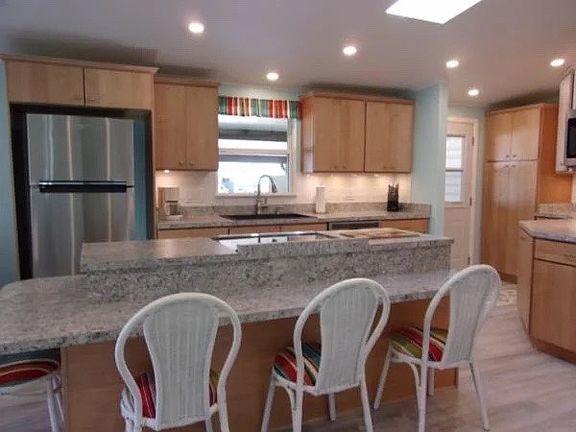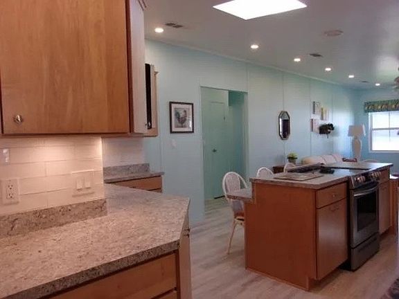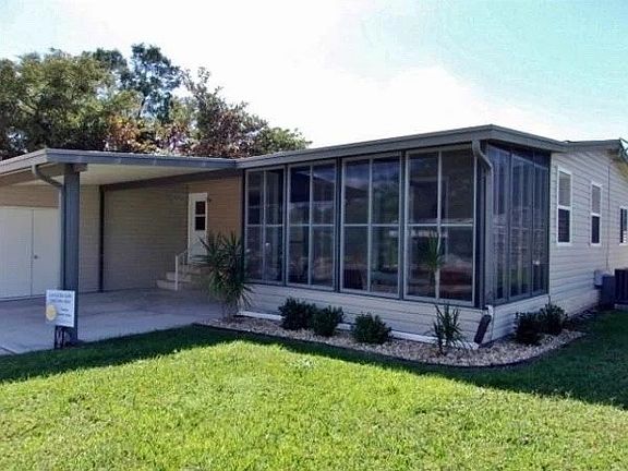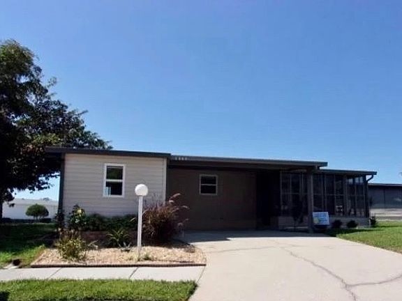 2905 Thatch Palm Court, Ellenton FL Ridgewood Estates 55+ Community This home is on a rented/leased lot Updates Galore! 2019 Roof; 2016 A/C; Side-by-side Carport in Cul-de-Sac Updated and remodeled, unfurnished split 2BR/2BA bedroom model is located in a private cul-de-sac setting with an oversized lot. It is close to the pool, hot tub, shuffleboard courts and clubhouse. The home is landscaped with a side-by-side covered carport, front set lanai along with an oversized shed featuring double entry doors; finished walls, built-in shelving as well as overhead storage; ceiling fan; extra electrical outlets and a utility sink. Newer features include: 2019 roof and skylight (with opening feature); 2016 A/C blower & thermostat; A/C duct work beneath the home; glass front entry door; double pane windows throughout home; drywall ceilings throughout; light fixtures; breaker box; neutral carpeting in both bedrooms and custom paint. This home utilizes an open floor plan with a living room, dining room and island kitchen combination with newer wood laminate flooring in these areas as well as in the hallway. Newer sliding glass double pane doors (with blinds in between the glass) leading out to a front set lanai with newer vinyl sliding windows. Lanai has newer entry door leading out to covered carport area. The island kitchen has been totally remodeled and updated with cabinets featuring pull out drawers: counter tops, tiled back splash, track lighting, kitchen sink/faucet. The island has a drop down counter for standard chair seating. The kitchen has a pantry and broom closet, plus an extra side bar cabinet with counter space adjacent to the kitchen. The master bedroom has carpet, high ceilings with a ceiling fan and a walk-in closet. The master bathroom has been remodeled & updated with ceramic tile flooring; there is a walk-in ceramic tiled shower, newer vanity with storage, newer sink and faucet, newer plumbing, and the bathroom features a pocket door entry. The guest bedroom has carpet, high ceilings with a ceiling fan and a closet. The guest bathroom has been updated, featuring: newer ceramic tile flooring, newer shower insert, newer vanity, sink & faucet along with newer plumbing. Lot rent: ~$868 includes lawn, tennis, pond, 2 pools, 2 clubhouses, more community amenities and many community activities. This home is a MUST SEE and lives large with its' open floor plan and natural lighting. So many extras and great care have been put into the details. MOVE IN ready!!! Ridgewood Estates is a well maintained GATED community with 2 heated pools, a hot tub, shuffle board & tennis courts, horseshoe pit, pool side club house with a library, fitness center & billiards room. There is a large "event" center used for many HOA sponsored events. Cards, Bingo, Chair Volleyball, water aerobics....just to name a few :-) Florida MH Sales, LLC cannot guarantee or warrant the accuracy of this information, measurements, or condition of any property. Measurements are approximate. All homes are sold "as is" and personal or professional inspection is encouraged. Lot rent is set by the community and is subject to change. All buyers must be approved by the community prior to closing on a negotiated sales contract