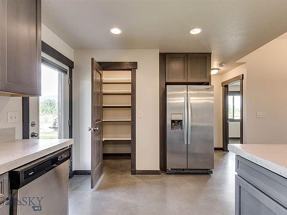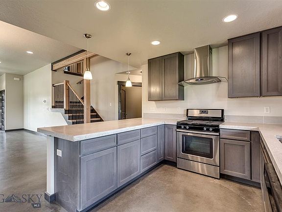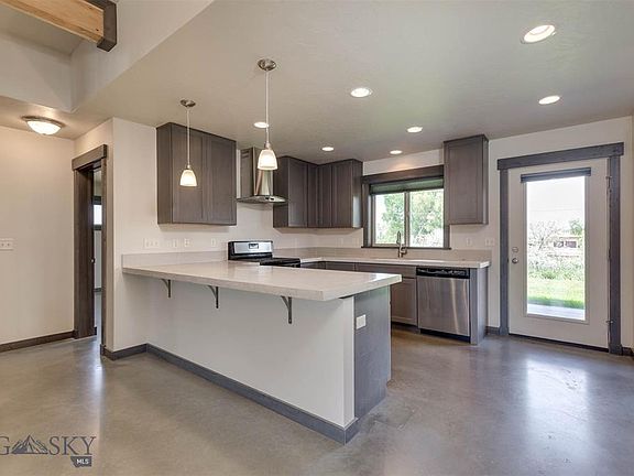 This well-maintained home has contemporary finishes with a welcoming feel. It has concrete floors, high efficiency radiant in-floor heating, custom tile in bathrooms, wood trim and doors, and sits on a corner lot backing to open space and across the street from a park. The windows give lots of natural light and great views of the Bridger Mountains, and the yard is fully landscaped. The open kitchen has custom concrete countertops, stainless steel appliances and a large pantry. It also has a large garage that is fully finished and heated. All this and it is conveniently located nears schools, shopping, and dinning.
