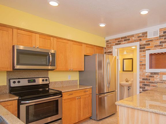 Beautiful 3 bedroom, 2.5 bath,~1452 sq.ft home! This Completely renovated townhome has been remodeled with granite kitchen counters, sparkling stainless steel appliances, LED cann lighting with dimmers in kitchen and throughout downstairs, energy efficient windows, Faux 2 inch white blinds, new interior paint, built in closet storage, Fully renovated bathrooms, New tile and natural Acacia hardwood flooring! This home features custom architectural details such as archways, brick accent walls and a built in media center. Custom built ins are located throughout home and garage. Home is an attached SFR, not a condo! FHA/VA accepted!