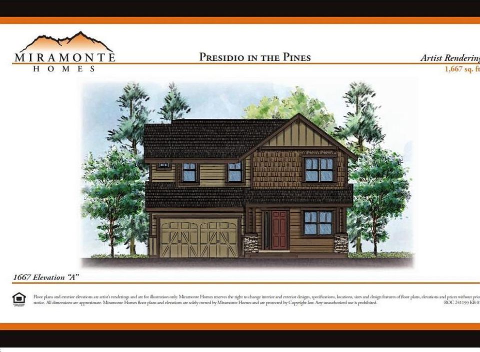 $5000 BUYER INCENTIVE! The 1667 plan is another homebuyer favorite featuring a functional & open layout with great room, dining area, kitchen, laundry & a bedroom on the main level. Upper level consists of a large master bedroom suite w/an executive walk in shower, executive height vanity w/dual sinks, plus an additional guest room & full bath. STANDARD features on all Miramonte homes (in Presidio) are kitchen w/slab granite countertops, 42'' upper cabinets in 4 color choices, 18'' porcelain tile floors, oversized pantry, GE white or black appliances, cathedral & raised 9' ceilings w/8' doors throughout, paver driveways & patios, full roof frost shield, landscaped/irrigated front yards, gutters & more! 3 Bedroom | 3 Bath | 1667 sq. ft.|2 car garage. MODELS OPEN EVERYDAY 10:00-5:30!