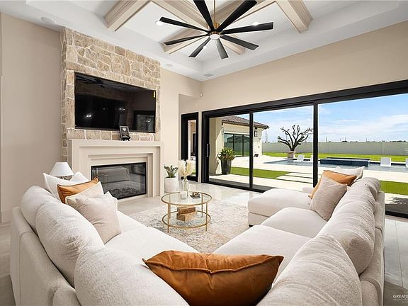 Exquisite 4-Bedroom, 4-Bath Home in Gated Northwood Trails. Beautifully designed with an open-concept layout and soaring decorative ceilings, this stunning home offers generous living spaces ideal for entertaining or everyday comfort. Features include a fireplace, wet bar, and private office for work-from-home flexibility. The gourmet kitchen boasts a large island with breakfast bar, custom cabinetry, modern lighting, and a spacious walk-in pantry. Rich finishes throughout create a warm and refined atmosphere. The luxurious primary suite features dual vanities, a spa-inspired shower, and an spacious walk-in closet with abundant storage. Each bedroom offers comfort and privacy, with well-appointed bathrooms. Enjoy your own backyard oasis with a sparkling pool, manicured lawn, and a gym with sauna. Conveniently located just minutes from shopping, dining, and schools, this impeccable home offers the perfect blend of elegance, and comfort. A true example of upscale living redefined.