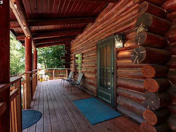 Perfect location for living your dream of a log home in the country. Imagine spending days on the covered front porch watching the wildlife around you or nestle with the woodstove on the chilly winter nights. Open vaulted living room with tongue and groove ceilings. Island kitchen with great room style design for family and dining rooms. One bedroom on the main floor gives you flexibility for primary bedroom location. All appliances to remain making this home move in ready for the new owners. Plenty of room for parking, RV, boat or trailer. Separate shop for all your hobbies too.