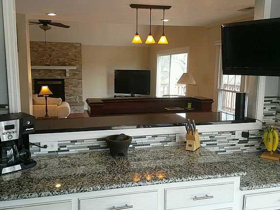 Fully updated WATERFRONT opportunity on quiet cul-de-sac st full of waterfront homes. All 3.5 BAs & kitchen updated w/granite countertops & tile flrs. 2 large updated living areas w/refinished fireplaces. Upstairs has full open concept living & kitchen. Outdoor living area has 3 Tv's, granite top bar, fire pit &plenty of storage. 2 car+ garage has full 2nd level that would convertible to more finished living space. Deep water around the dock & in a no wake zone. A must see for lake living.