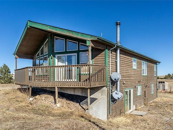 This is a great chance to live on acreage! This 4 bed/3 bath home sits on 5 acres and has a great view of Pikes Peak. Don't miss your chance for some sweat equity and make this your home yours. With a full walk-out basement, this home has almost 3000 square feet of living space. A new septic system is being installed. Easy access to Franktown and Parker.