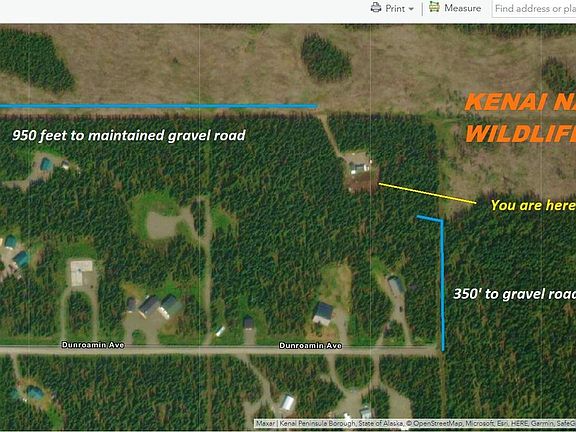 Very private corner property to the Kenai National Wildlife Refuge.  2.42 acres.  Gravel driveway, 70x50 gravel pad, 1500gal septic.  Level property with two entrances at the base of a big mountain range.  Premium access to hunting/fishing/atv and snow trails.  Beautiful mountain views.  20x16 finished cabin, insulated floors/walls/attic, electric wiring done, 400W Solar/4 KWH LIFEPO4 powersystem, RV plug.  No CCR's. Good cell signal.  This is a very private, rare, corner property with front-row access to the Kenai National Wildlife Refuge.  Thousands of acres of pristine Alaska forest to play/hike/explore/ski/camp/hunt and fish.  Wake up to beautiful mountain views, clean air, privacy, lots of space, and nothing but the sounds of nature at this location.  Very few neighbors in this area, most lots are unoccupied summer vacation homes per seller.   The 400W solar system produces 150KW-200KWH's of free electricity during the summertime.  Hook up to city power if you want to-cheap for new customers (link from rear neighbor) Per seller.  Oil heater, 1500 gal septic system.  Drill a well for low cost too- at only 35-55 depth here.  Entrance trail is less than 1/4 mile - Driveable June through November, walkable all year.  2 lots could be developed separately, sold as one.  No building restrictions here.  Lots of uncut standing timber.  Good cell signal, low property tax, Kenai River/lakes nearby, easy access to Anchorage, year-round maintained roads, free trash disposal@ WM.  New Grocery/fuel EV charge station only 6 miles away.