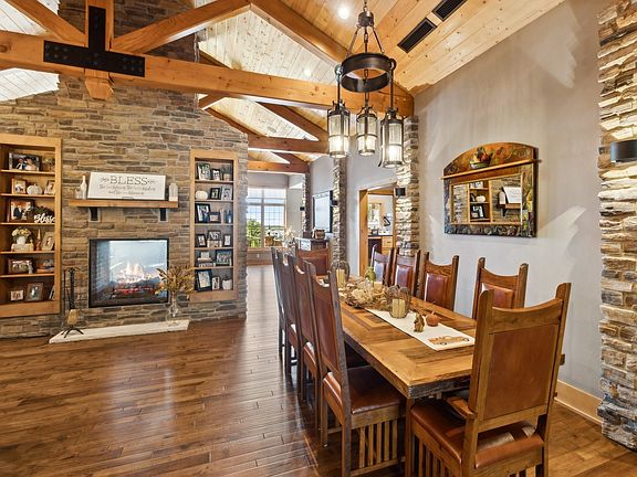 See thru stone fireplaceWet barPrivate wooded acresToy roomRubber floor exercise roomKnotty pine ceilingsHidden walk-in pantry
