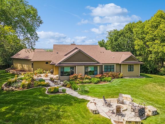 Large 6,933 sq. ft. ranch, with 24’x48’ shop, on six private wooded acres, just off Hickman Road east of Adel. The home features 5 BRs, 6 bath, mountain lodge styling, first floor vaulted ceiling with authentic solid Douglas Fir beams, knotty pine ceilings, a see thru stone fireplace; kitchen with a hidden walk-in pantry with full size freezer, alder wood cabinets, two islands that seats 8, quartz counters, GE Monogram appliances including a 6-burner gas range, farm sink & outside exhaust vent; a four-season porch with fireplace, wet bar, large laundry room, primary BR with a large walk-in closet with built-in dresser & 50-pair shoe rack, primary bath with heated floors, soaking tub and zero-entry walk-in shower; and laundry with Maytag commercial washer & dryer. The lower level has heated floors, 3 BRs, 2½ baths, large rec/family room, rubber floor exercise room, toy room & 890 bottle wine cellar. Four zone heating and air conditioned with both economical geothermal and propane forced air. Lifebreath whole house air filtration cleans the air. Culligan water softener & reverse osmosis system. The oversized attached garage is 26’ deep and has 1,353 SF. The 1,152 SF heated and air-conditioned out-building is currently used as a wood shop but can be converted to car storage or even separate living quarters. The 6 acres has a flat sodded back yard, and the remainder is wooded with lots of wildlife. Just ¼ mile to the 72-mile paved Raccoon River Valley recreational trail.
