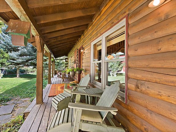 Your log home ON THE CREEK awaits! 4.63 acres of lush, mature landscape encompass a main home, a detached ADU and a giant shop for all your toys. Enjoy the peaceful setting of Cattle Creek flowing through the lower side and bring your horses for the fenced pasture on the upper side. This property includes 1.5 shares of Sheaffer Ditch rights for irrigation. The main home offers three modest bedrooms and a finished basement currently utilized as a billiard room and fitness area. From the basement you can access the extra detached bedroom or artist studio with stunning views of the passing water. Bring your gardening gloves, your boats and RV's and your horses and settle into a country lifestyle just minutes from downtown.