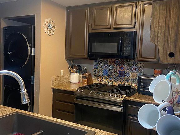 Welcome to Ranchwood! This private community has it all and these units sell quick! This ground level, end unit features tons of privacy and ample space with 3 bedrooms and 2 baths. Beautifully done tile flooring flows throughout this living space giving it an updated and modern feel. The kitchen features newer appliances and plenty of upgrades as well as a laundry closet with stackable washer/dryer. Enjoy evening fires in this cozy open concept living room. Easily access the fully fenced, low maintenance patio area from both the living room and master suite, for additional entertaining space. The master bedroom features a walk-in closet and recently remodeled private bath. The Ranchwood community features a lovely grass area for dogs, kids, family get togethers or just enjoying the outdoors along with pool and jacuzzi amenities! Not to mention this complex is conveniently located near Rancho San Diego, schools, shopping and freeways. This unit won't last!