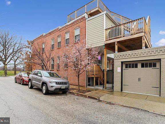 Stunning three story renovated end unit row home across the street from Patterson Park with a CHAP Tax Credit. This 15ft wide, 4 bedroom, 3 full bathroom home includes spacious closets, spans over 2,000 sqft and includes a 1 car garage. Gorgeous hardwood floors, 9ft+ ceilings, recessed lighting, and custom trim work are found throughout the home. The chef's kitchen includes quartz counter tops, upgraded stainless steel appliances, and a large waterfall island. The main level consists of the chef's kitchen, dining room, and living room that are showered with natural light. The upper level includes a front master suite with dual closets and a large master bath with an over-sized walk in shower along with a second bedroom and a second full bathroom. The fully finished lower level includes two additional bedrooms and another full bathroom. House is topped off with a two-level roof top deck built for entertaining and taking in a beautiful sunset. This home is a must see!