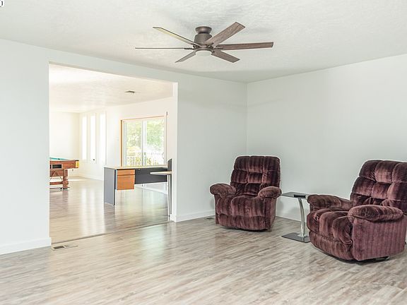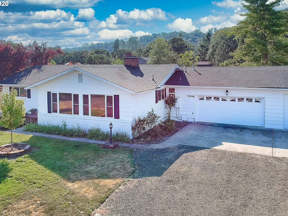 Gorgeous views of the surrounding hills & a refreshing breeze from the nearby North Umpqua river welcomes you to this newly remodeled home. New roof, interior and exterior paint, flooring and lighting. Level 0.85 acres, partially fenced and has mature fruit trees, roses, room for animals and a garden, and well water. RV parking w/hook-ups and 3-car garage w/drive-thru access to the back field. Master suite has double closets, private bathroom, and door to the covered back patio.