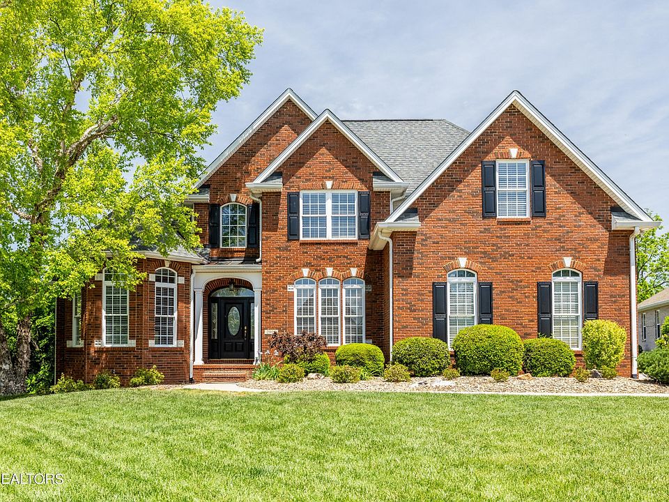 Discover luxury and comfort blended perfectly in this impressive 6-bedroom, 4-bathroom Maryville residence. Spanning over 4,613 square feet and set on three meticulously designed levels, this fully equipped brick home offers ready-to-move-in conveniences, high-end finishes, and majestic mountain views. A professionally manicured yard greets you and then you'll step into a grand foyer adorned by an exquisite chandelier that leads into a series of rooms crafted with attention to detail. The living room features a vaulted ceiling that enhances the sense of space and light, while the cozy gas fireplace adds warmth to both formal and casual gatherings. Culinary enthusiasts will delight in the gourmet kitchen featuring new appliances including double ovens, striking granite countertops, a convenient island, and ample storage with a pantry. Meal times are a treat with a charming breakfast area that overlooks the pool and provides mountain views through bay windows. The main level hosts two impressive primary bedrooms, each providing a unique charm. One primary suite includes a bayed sitting area, double closets, and a luxurious bathroom with double vanities, a walk-in shower, and a jetted tub. The second primary main level bedroom functions perfectly for guests or an in-law area. The hardwood floors on both the main and upper levels enhance the warmth of this welcoming home. A well equipped laundry room is conveniently located on the main level. Upstairs, discover three generously-sized bedrooms with substantial storage and a another full bathroom. The lower level redefines basement living with its spacious layout that includes an additional living area with a fireplace, a premium suite with an attached lavish bathroom featuring a jacuzzi tub and an ornate chandelier, and new luxury vinyl flooring throughout the basement. Higher, finished ceilings and the luxury vinyl plank flooring ensure this looks and feels more like main level living than a basement!