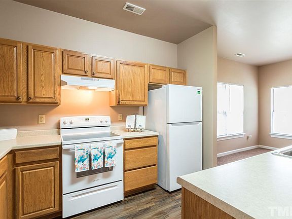 This charming 3-bedroom home is located on a cul-de-sac. The lot backs up to a wooded area for extra privacy. New laminate flooring; Newly painted throughout. Open kitchen with adjoining dining area with access to back yard. Attached storage. Covered front porch with plenty of room for sitting and relaxing. Convenient to Duke, UNC, Hwy 70, I-85, Brier Creek for shopping and dining. All waiting for you to make it your home!