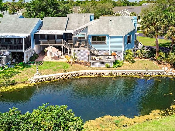 This home is optimal for a getaway or full-time residence, this end unit boasts ample natural light, creating a serene, attractive, and cozy living space. Recently renovated, it features updated flooring and a kitchen that rivals Better Homes and Gardens standards, boasting top-of-the-line cabinetry and appliances. The kitchen also showcases exquisite grade 4 granite countertops. Both bathrooms have been tastefully renovated. Outside, two patio areas offer versatility—one fully screened for enjoying morning coffee or evening cocktails with views of the tidal pond fountain, saltwater swimming pool, tennis court, and green space. The community offers a boat dock and close proximity to a county boat ramp. Additionally, protect your boat conveniently under the house and be on the water within minutes. Alternatively, head just minutes down Ft Island Rd to the beach for a refreshing dip and some sun. Come enjoy a waterfront view of the tidal lagoon from your back porch!