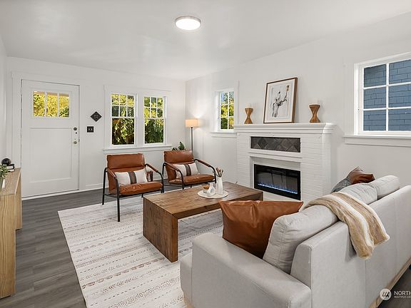 Situated on a quiet street minutes from I-90, this well-maintained 1925 home offers views of the Seattle skyline. It combines classic charm with modern updates, including new flooring and stainless-steel appliances. The open layout is designed for comfortable living and entertaining, featuring a fireplace and updated kitchen. The main level includes two bedrooms and a full bath, while the lower level offers a bonus room and a 3/4 bath, providing flexible options for relaxation or work. Enjoy sunsets over the city from the back deck, and take advantage of the fenced backyard and off-street parking. Close to shops, and restaurants on 31st Ave, as well as Colman Park and Lake Washington. Pre Inspected.