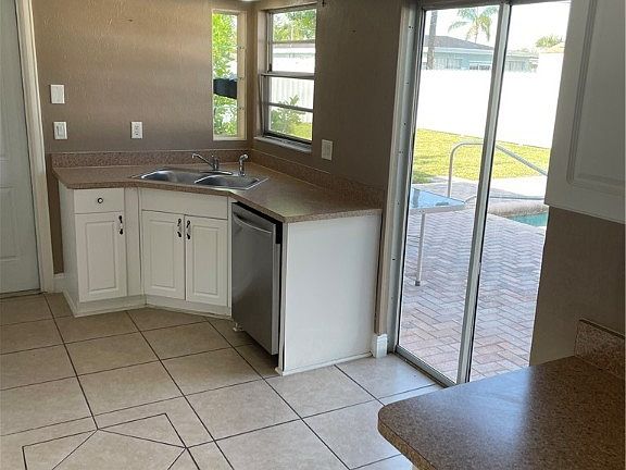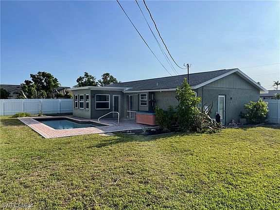 Updated home with in-ground pool. 3 bedrooms, 2 baths, 1 car garage. Recently renovated to include newer roof, AC, windows, bathrooms, and kitchen with stainless-steel appliances. Oversized corner lot includes fenced-in pool and backyard with plenty of space for outdoor activities. Washer and dryer included. Highly desired area of SE Cape Coral, across the street from Rubicon Canal and beautiful gulf-access homes.