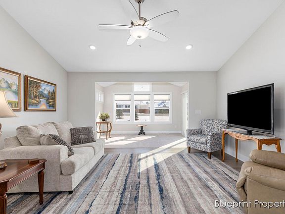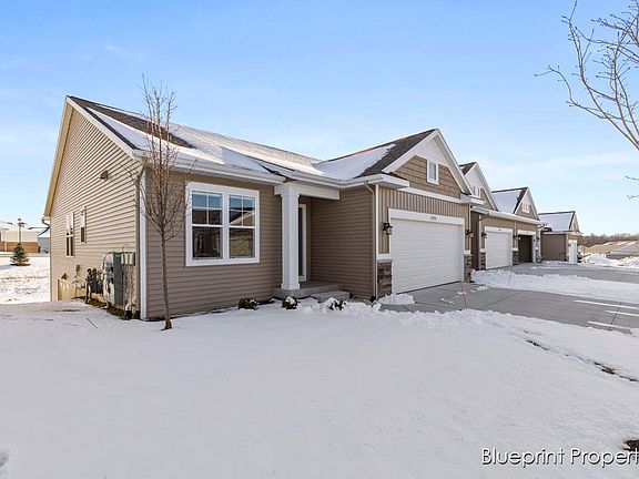 Beautiful end unit in Meadow Creek! Tributary Drive is nestled in the very back of the Meijer/retail area and two other housing developments - StoryPoint and Meadow Creek Flats. Built in 2022, this ranch style condo has 1394 square feet on the main level, with a partially finished walkout basement. Walk into an open concept kitchen, dining area, living room and 4 seasons room with a 10x10 deck. There is also a den/office off the main entry. The remainder of the main floor includes primary suite with walk in closet, laundry, and half bathroom. The lower-level walkout includes a large recreational room, bedroom, full bath and ample storage. Attached two stall garage. Good as new and you don't have to wait for possession!