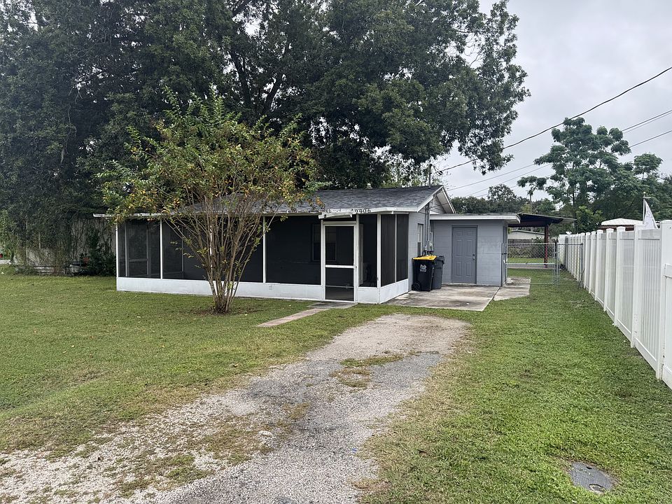 3 bedroom/ one bath home with laundry room, screened front porch, detached patio, shed, and lawn care included.