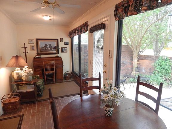 Townhome Living is ideal for you on a Larger Lot! Also no association fees! One and Half story in excellent location! Large Foyer (13x7) with storage under stairway. Spacious Great Room with fireplace and gas logs, open with Dining Area. Wonderful sunroom on rear of home with many new windows to enjoy!!Brick pavers add appeal to being in Sunroom. Laundry Room is off Sunroom. Kitchen with white cabinetry and appliances. Breakfast area for small table. Master Bedroom is downstairs with large walk in closet. Master Bath with garden tub. Another bedroom is downstairs with full bath. Upstairs is large bedroom with full bath, with two large walk in closets! Extra attic storage is upstairs also. Fantastic patio to enjoy year round! Wonderful lot with grassy area for dogs and kids to play on! Offers extra privacy from other townhomes. Great location that is close to shopping,churches and restaurants! Call to view!